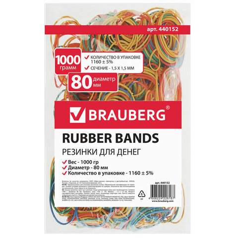 Банковские резинки BRAUBERG предназначены для упаковки денежных купюр, а также используются в производстве и других сферах деятельности. В упаковке - 1160 шт. ± 5%.