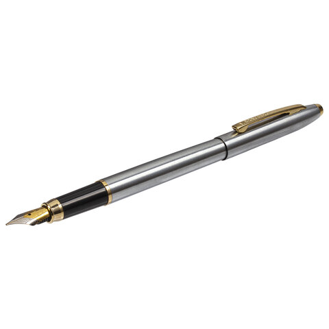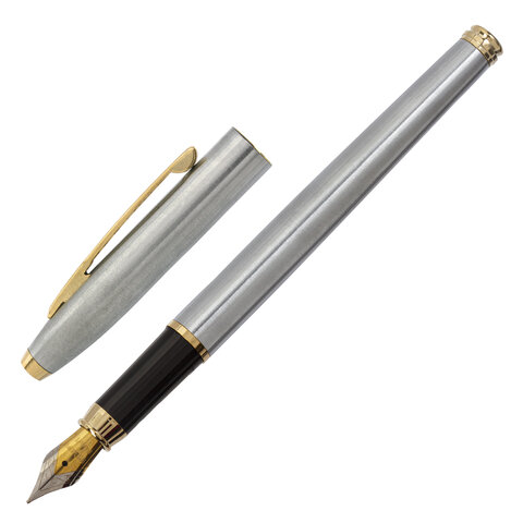 Ручка подарочная перьевая BRAUBERG "Brioso", СИНЯЯ, корпус серебристый с золотистыми деталями, 143464