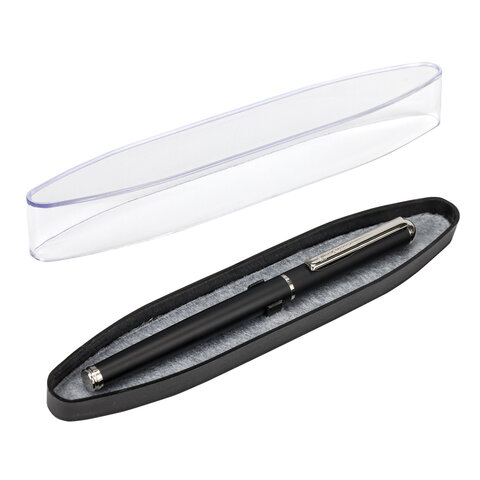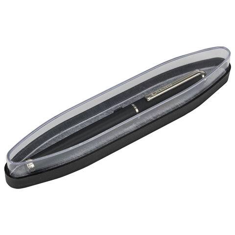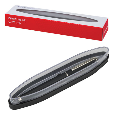 Ручка подарочная перьевая BRAUBERG "Larghetto", СИНЯЯ, корпус черный с хромированными деталями, 143477