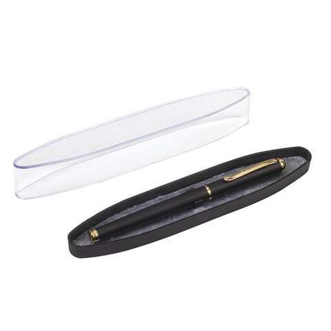 Ручка подарочная перьевая BRAUBERG "Maestro", СИНЯЯ, корпус черный с золотистыми деталями, 143471