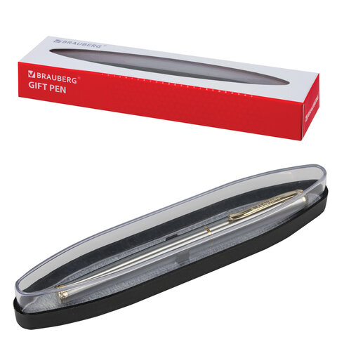 Ручка подарочная перьевая BRAUBERG "Maestro", СИНЯЯ, корпус серебристый с золотистыми деталями, 143469