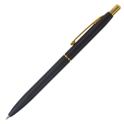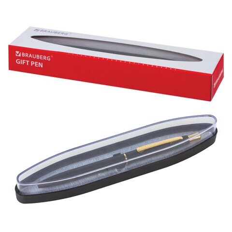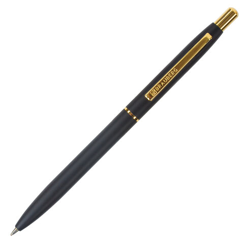 Ручка подарочная шариковая BRAUBERG Brioso, СИНЯЯ, корпус черный с золотистыми деталями, линия письма 0,5 мм, 143466