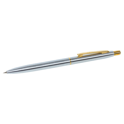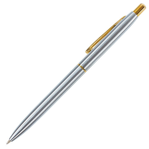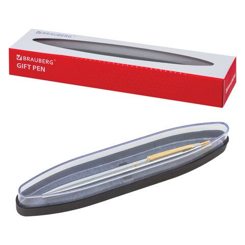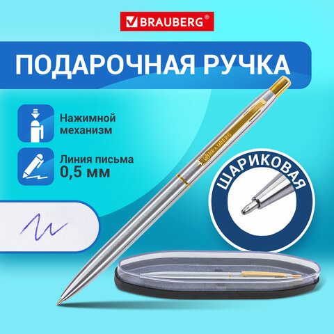 Ручка подарочная шариковая BRAUBERG Brioso, СИНЯЯ, корпус серебристый с золотистыми деталями, линия письма 0,5 мм, 143463