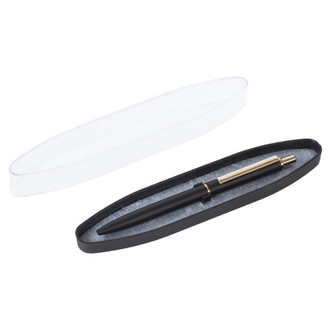 Ручка подарочная шариковая BRAUBERG "Larghetto", СИНЯЯ, корпус черный с хромированными деталями, линия письма 0,5 мм, 143476