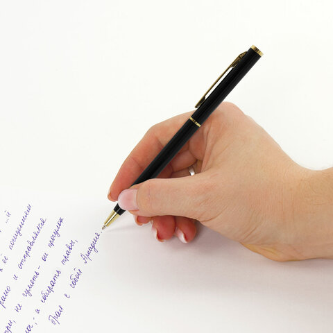 Ручка подарочная шариковая BRAUBERG "Slim Black", корпус черный, узел 1 мм, линия письма 0,7 мм, синяя, 141402