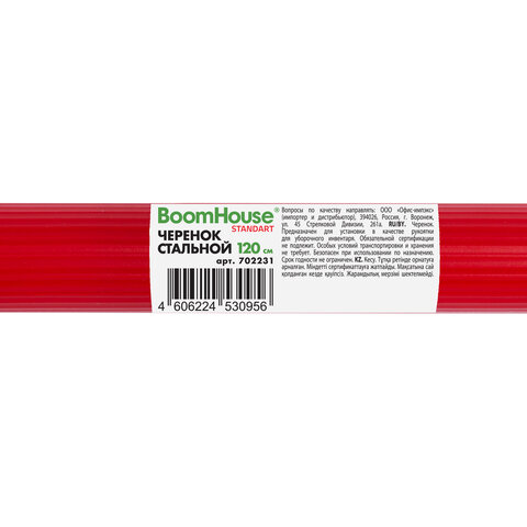 Черенок рукоятка для инвентаря 120 см, еврорезьба, металлопластик 0,3 мм, красный, BOOMHOUSE (БУМХАУС) STANDART, 702231