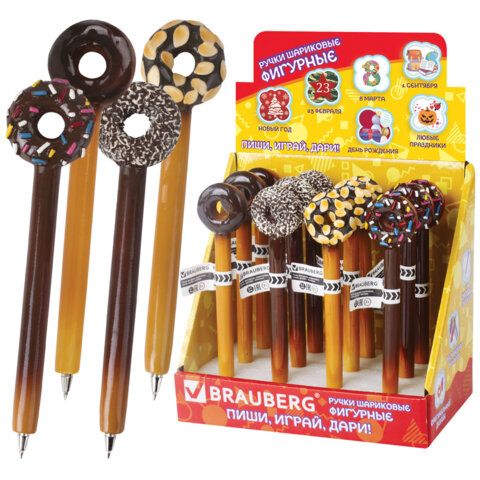 Ручка фигурная "ПОНЧИКИ", СИНЯЯ, 4 дизайна ассорти, линия письма 0,5 мм, дисплей, BRAUBERG, 142759