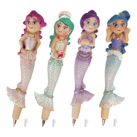 Ручка фигурная "РУСАЛОЧКИ-2", СИНЯЯ, 4 дизайна ассорти, линия письма 0,5 мм, дисплей, BRAUBERG, 142773