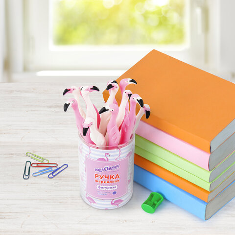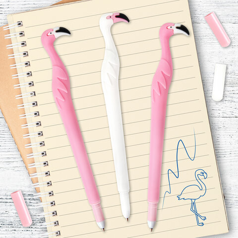 Ручка фигурная шариковая ЮНЛАНДИЯ "Фламинго", мягкий силиконовый корпус, ассорти, СИНЯЯ, пишущий узел 0,7 мм, 143775