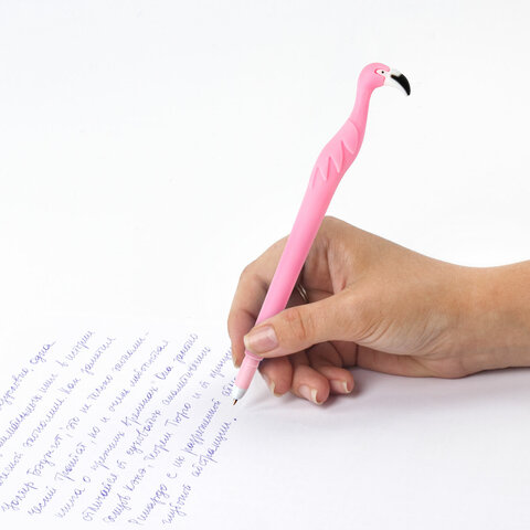 Шариковая ручка ЮНЛАНДИЯ "Фламинго" с мягким силиконовым корпусом.