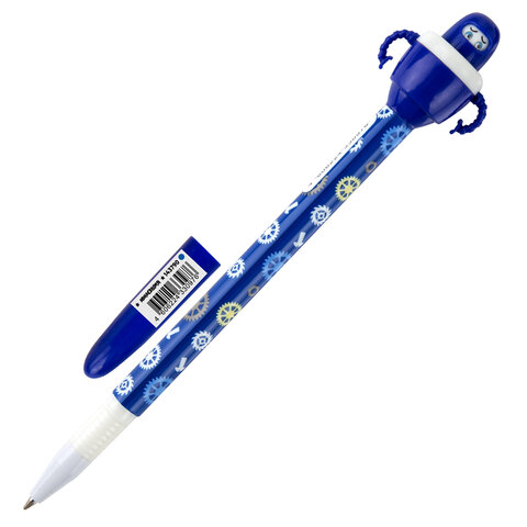 Шариковая ручка ЮНЛАНДИЯ "Робот" с милой игрушкой на корпусе.
