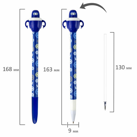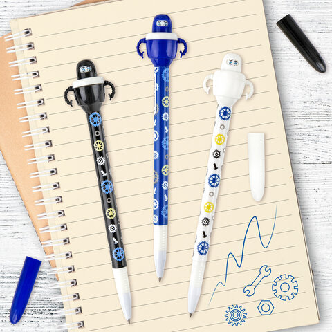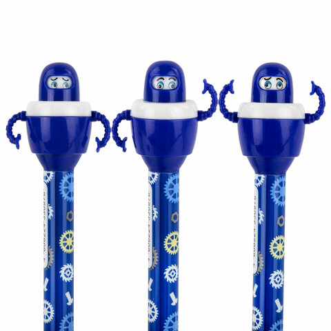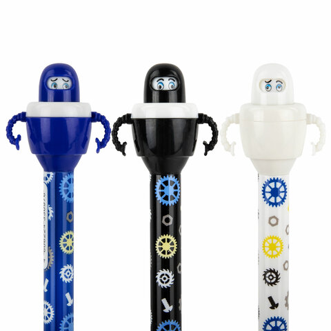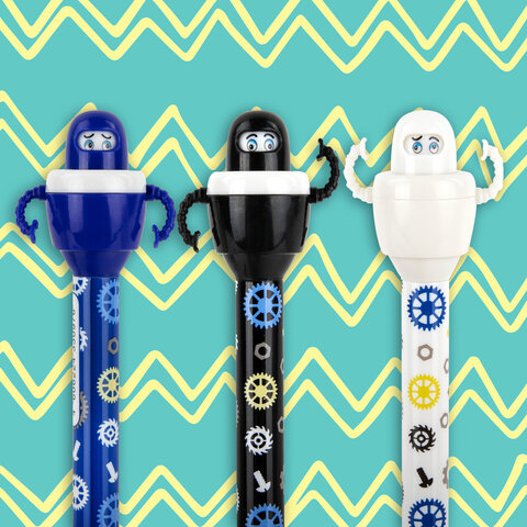 Ручка фигурная шариковая ЮНЛАНДИЯ "Робот", корпус ассорти, СИНЯЯ, пишущий узел 0,7 мм, 143790