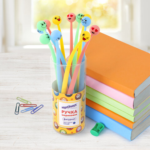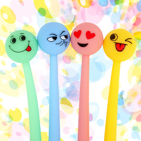 Ручка фигурная шариковая ЮНЛАНДИЯ "Смайлик", силиконовый корпус, ассорти, СИНЯЯ, пишущий узел 0,7 мм, 143793
