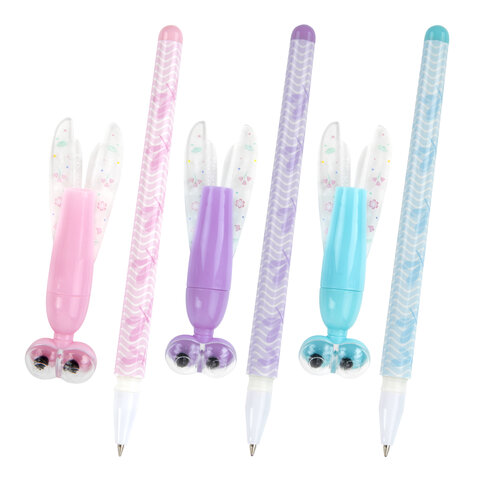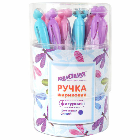 Ручка фигурная шариковая ЮНЛАНДИЯ "Стрекоза", корпус ассорти, СИНЯЯ, пишущий узел 0,7 мм, 143789