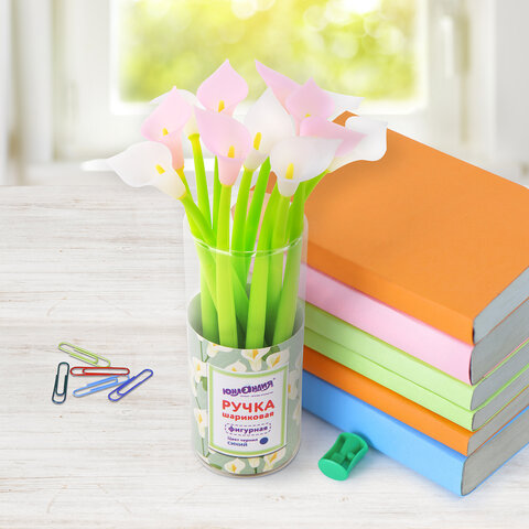 Ручка фигурная шариковая ЮНЛАНДИЯ "Цветок", силиконовый корпус, ассорти, СИНЯЯ, пишущий узел 0,7 мм, 143797