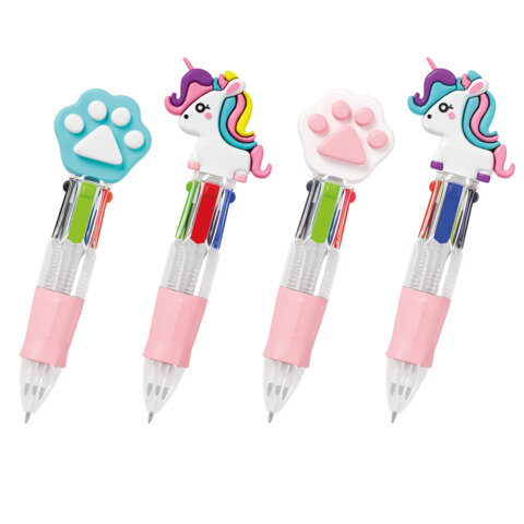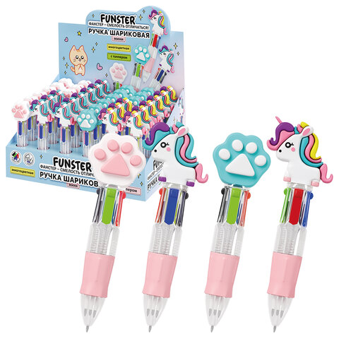 Ручка мини многоцветная с топпером шариковая автоматическая 4 ЦВЕТА FUNSTER (ФАНСТЕР) "MIX", ассорти, узел 0,7 мм, письма 0,35, 144378