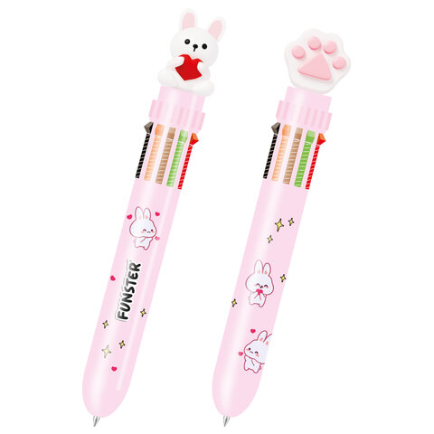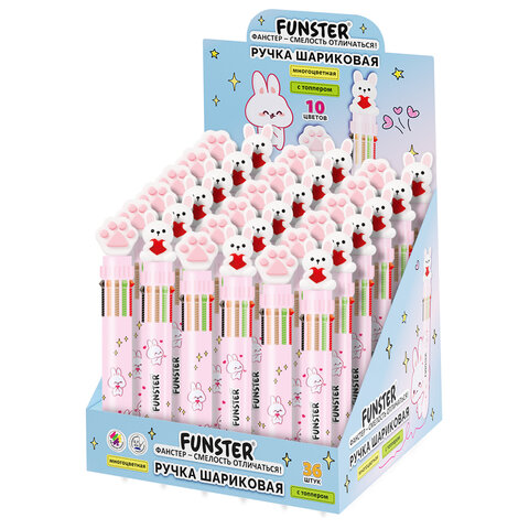 Ручка многоцветная с топпером шариковая автоматическая 10 ЦВЕТОВ FUNSTER (ФАНСТЕР) "WOW", ассорти, узел 0,7 мм, линия 0,35 мм, 144382