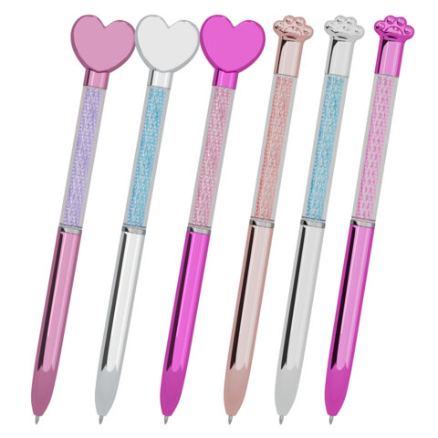 Ручка поворотная с топпером шариковая FUNSTER (ФАНСТЕР) "SHINY HEART&PAW", СИНЯЯ, ассорти, пишущий узел 0,7 мм, 144519