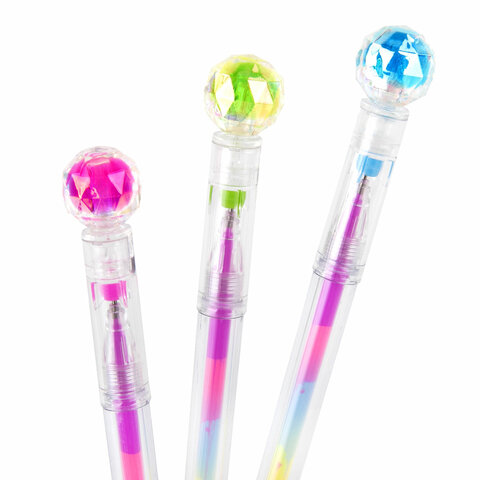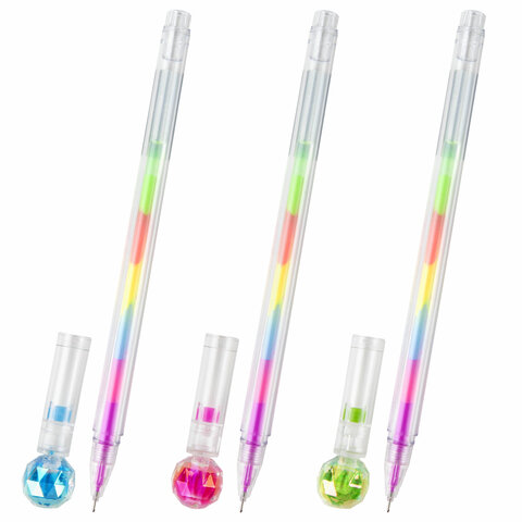 Ручка с топпером гелевая ЮНЛАНДИЯ "Хрустальный шар", ассорти, РАДУЖНЫЕ чернила, игольчатый пишущий узел 0,7 мм, 143785