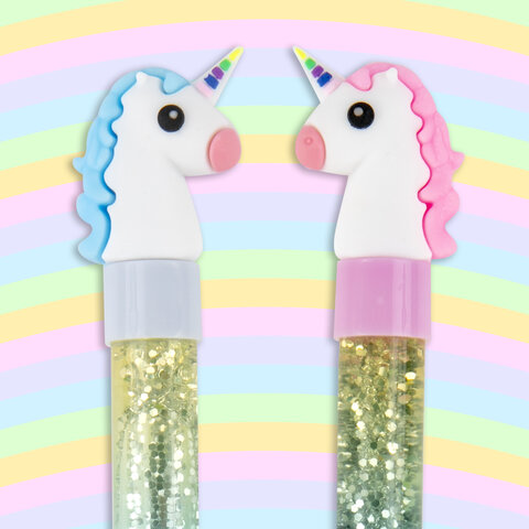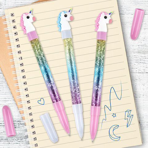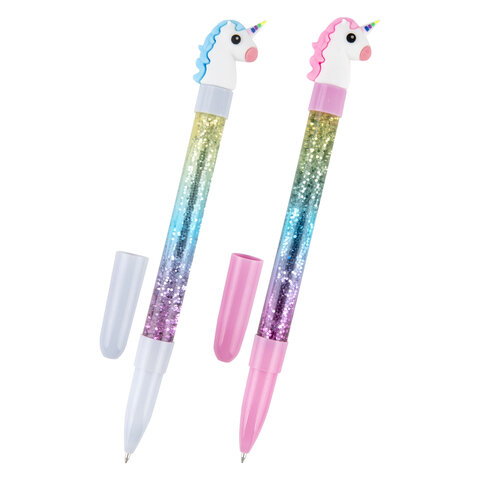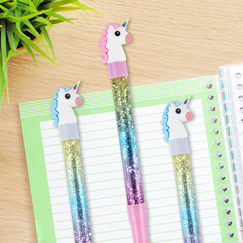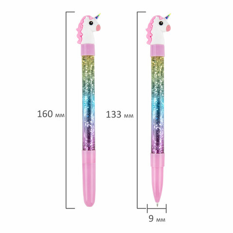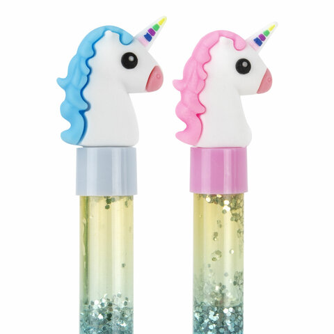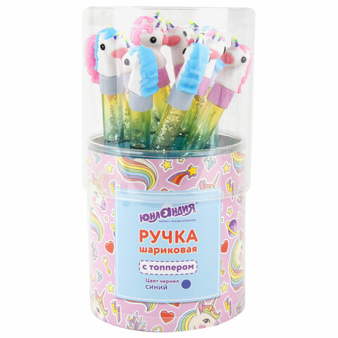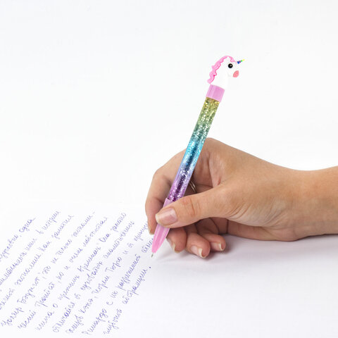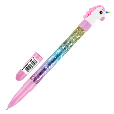 Ручка с топпером и блестками шариковая ЮНЛАНДИЯ "Единорог", детали ассорти, СИНЯЯ, пишущий узел 0,7 мм, 143791