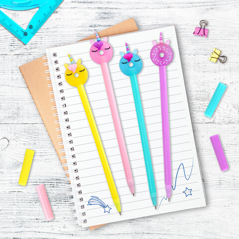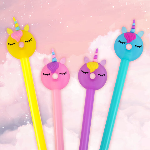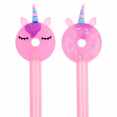 Шариковая ручка масляная ЮНЛАНДИЯ "Единорог-пончик" с милой игрушкой на корпусе.