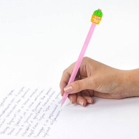 Шариковая ручка масляная ЮНЛАНДИЯ "Кактус" с милой игрушкой на корпусе.