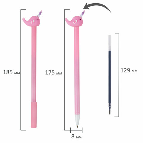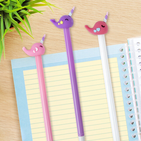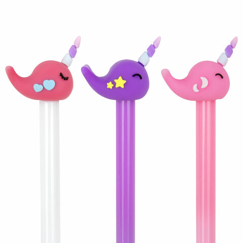 Шариковая ручка ЮНЛАНДИЯ "Кит-Единорог" с милой игрушкой на корпусе.