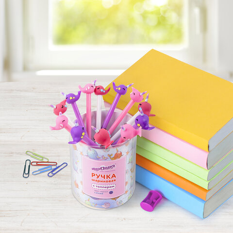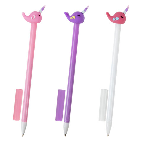 Ручка с топпером шариковая ЮНЛАНДИЯ "Кит-Единорог", корпус ассорти, СИНЯЯ, пишущий узел 0,7 мм, 143783