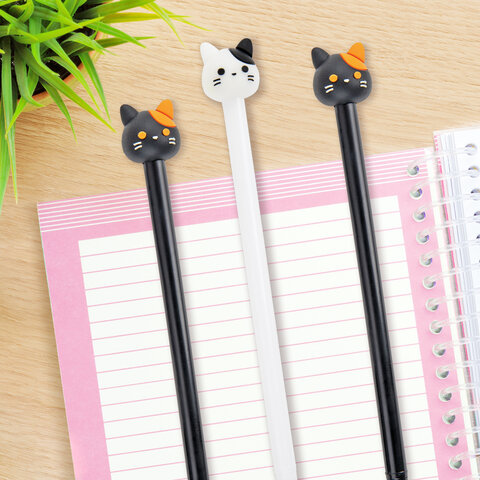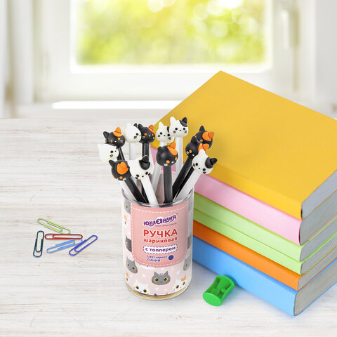 Ручка с топпером шариковая ЮНЛАНДИЯ "Кошка", корпус ассорти, СИНЯЯ, пишущий узел 0,7 мм, 143804