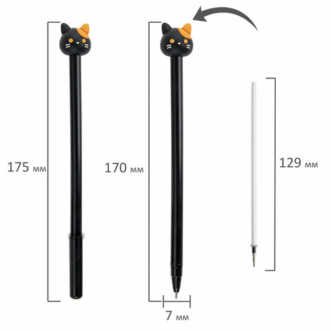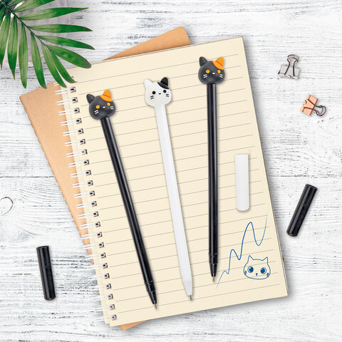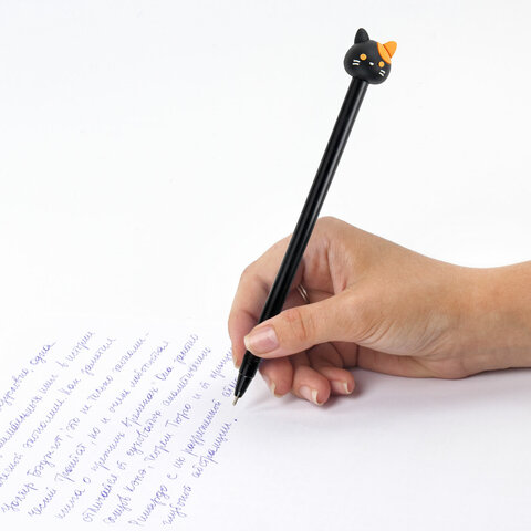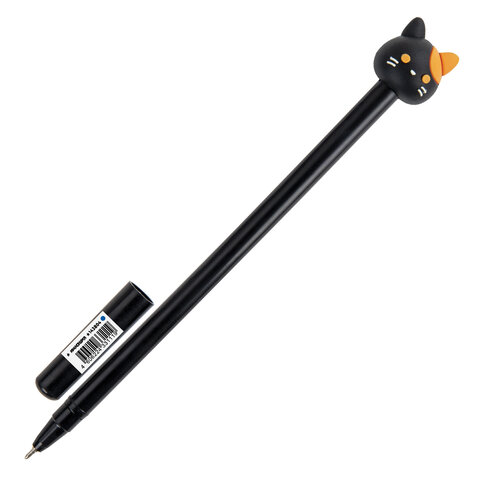 Шариковая ручка масляная ЮНЛАНДИЯ "Кошка" с милой игрушкой на корпусе.