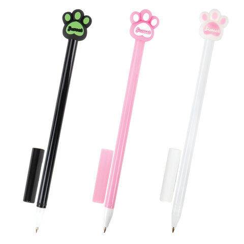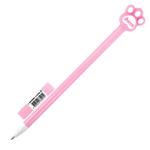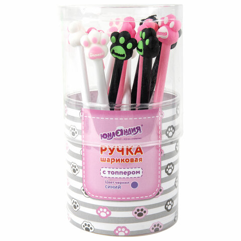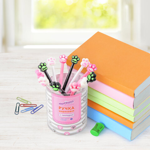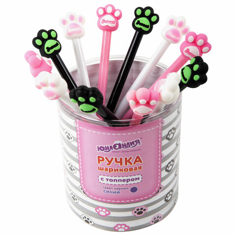 Ручка с топпером шариковая ЮНЛАНДИЯ "Лапка", корпус ассорти, СИНЯЯ, пишущий узел 0,7 мм, 143784