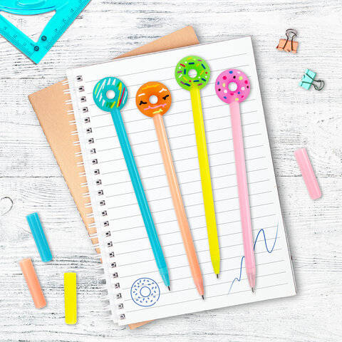 Шариковая ручка масляная ЮНЛАНДИЯ "Пончик" с милой игрушкой на корпусе.