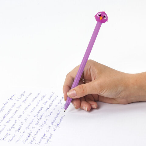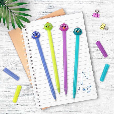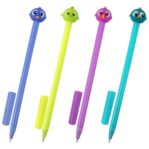 Ручка с топпером шариковая ЮНЛАНДИЯ "Птенец", корпус ассорти, СИНЯЯ, пишущий узел 0,7 мм, 143811