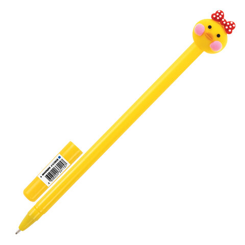 Шариковая ручка масляная ЮНЛАНДИЯ "Цыпленок" с милой игрушкой на корпусе.