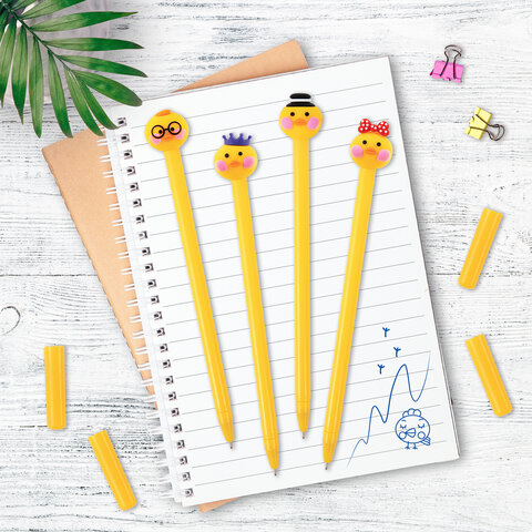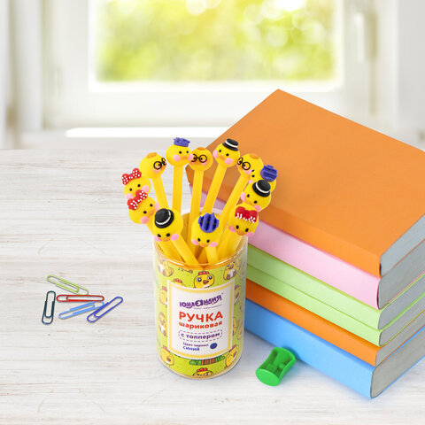 Ручка с топпером шариковая ЮНЛАНДИЯ "Цыпленок", корпус ассорти, СИНЯЯ, пишущий узел 0,7 мм, 143808