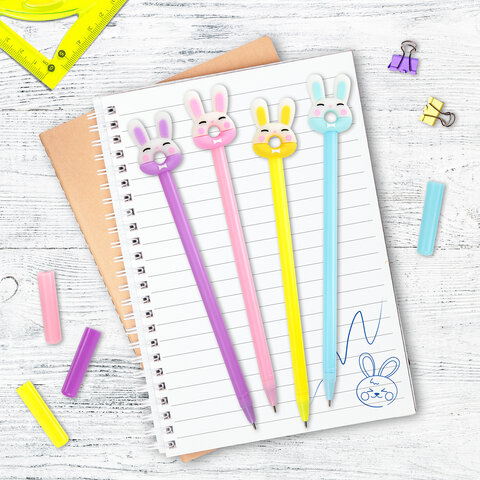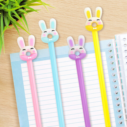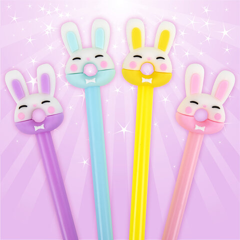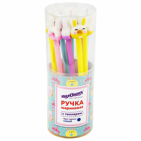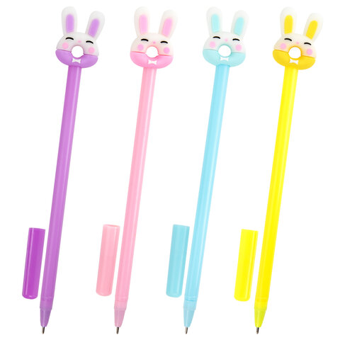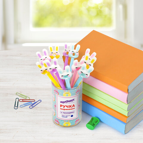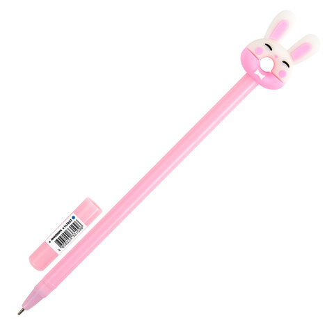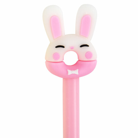 Ручка с топпером шариковая ЮНЛАНДИЯ "Зайка-пончик", корпус ассорти, СИНЯЯ, пишущий узел 0,7 мм, 143802