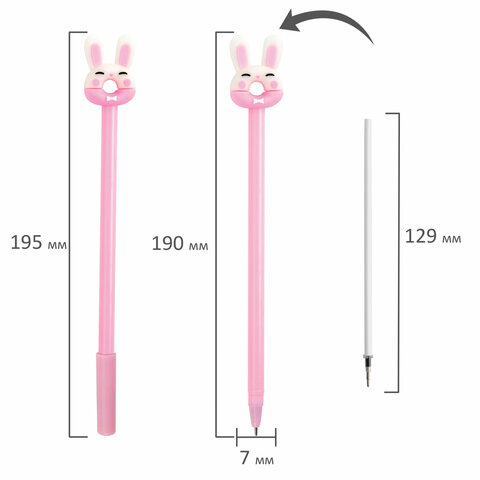 Шариковая ручка масляная ЮНЛАНДИЯ "Зайка-пончик" с милой игрушкой на корпусе.