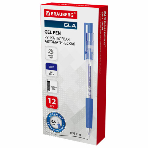 Ручка гелевая автоматическая с грипом BRAUBERG "GLA", СИНЯЯ, стандартный узел 0,5 мм, линия письма 0,35 мм, 144216
