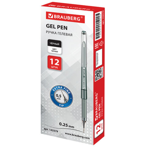 Ручка гелевая BRAUBERG DIAMOND, ЧЕРНАЯ, игольчатый узел 0,5 мм, линия письма 0,25 мм, 143379