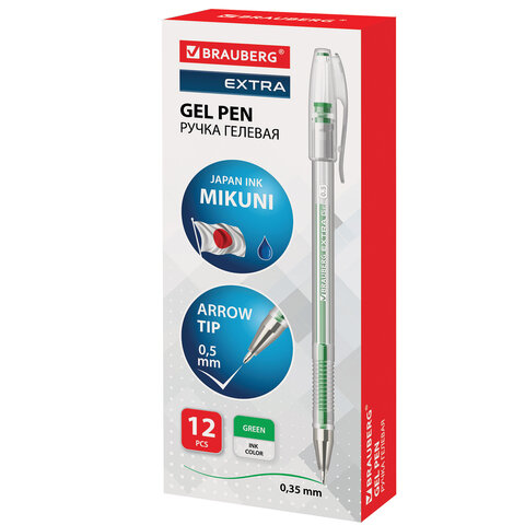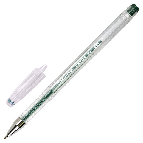 Ручка гелевая BRAUBERG "EXTRA", ЗЕЛЕНАЯ, корпус прозрачный, узел 0,5 мм, линия 0,35 мм, 143904