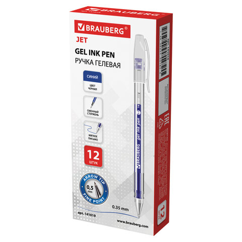 Ручка гелевая BRAUBERG "Jet", СИНЯЯ, корпус прозрачный, узел 0,5 мм, линия письма 0,35 мм, 141019