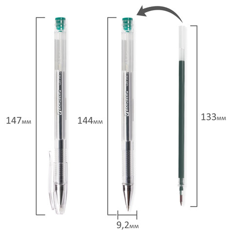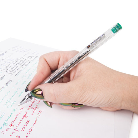 Ручка гелевая BRAUBERG "Jet", ЗЕЛЕНАЯ, корпус прозрачный, узел 0,5 мм, линия письма 0,35 мм, 141021
