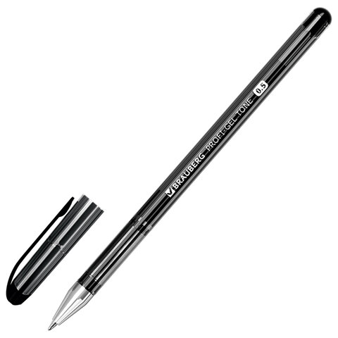 Ручка гелевая BRAUBERG "Profi-Gel TONE", ЧЕРНАЯ, линия письма 0,4 мм, стандартный наконечник 0,5 мм, тонированный корпус, 144127