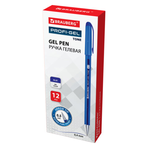 Ручка гелевая BRAUBERG "Profi-Gel TONE", СИНЯЯ, линия письма 0,4 мм, стандартный наконечник 0,5 мм, тонированный корпус, 144128