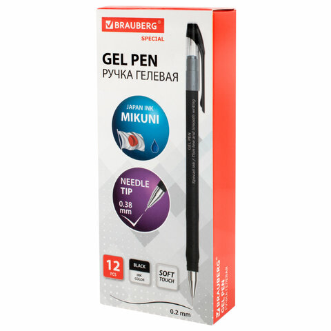 Ручка гелевая BRAUBERG SPECIAL, ЧЕРНАЯ, игольчатый узел 0,38 мм, тонкая линия письма 0,2 мм, 144246