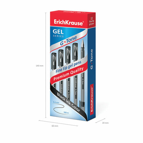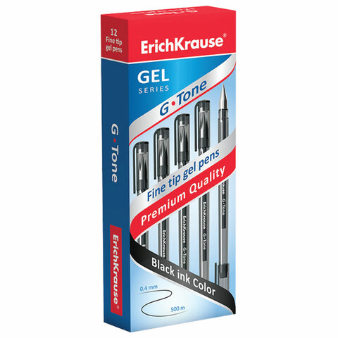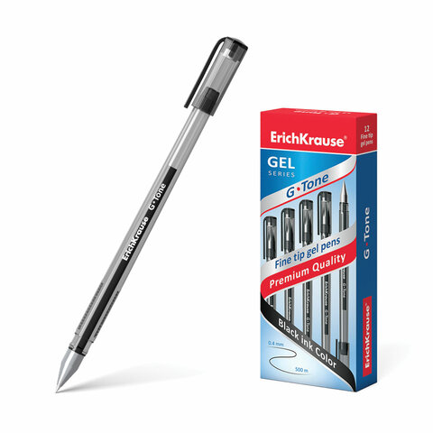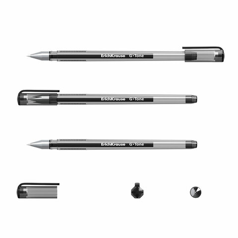 Ручка гелевая ERICH KRAUSE "G-Tone", ЧЕРНАЯ, корпус тонированный черный, узел 0,5 мм, линия письма 0,4 мм, 17810