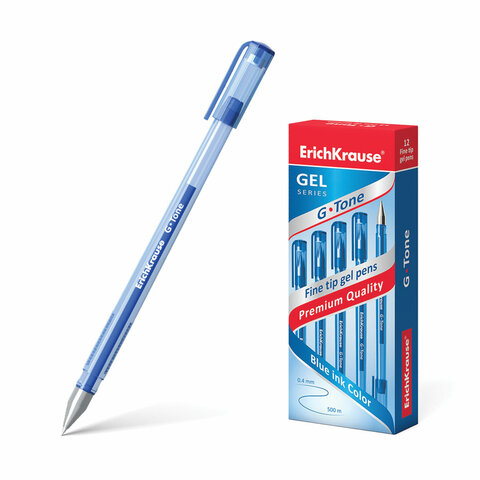 Ручка гелевая ERICH KRAUSE "G-Tone", СИНЯЯ, корпус тонированный синий, узел 0,5 мм, линия письма 0,4 мм, 17809