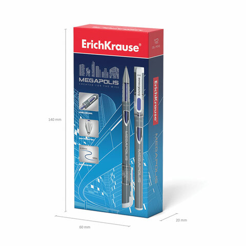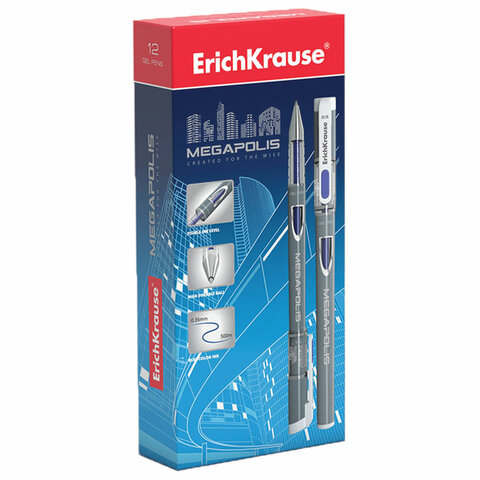 Ручка гелевая ERICH KRAUSE "Megapolis Gel", СИНЯЯ, корпус с печатью, узел 0,5 мм, линия письма 0,4 мм, 92