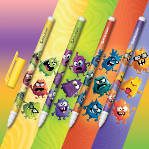 Ручка гелевая BRAUBERG "МОНСТРИКИ" – надежный пишущий инструмент и запоминающийся аксессуар, который дополнит процесс ведения записей положительными эмоциями и вдохновит на новые идеи.