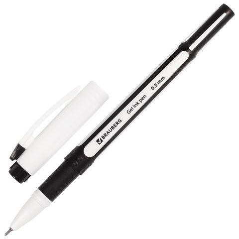 Ручка гелевая с грипом BRAUBERG "Contact", ЧЕРНАЯ, корпус черный, игольчатый узел 0,5 мм, линия письма 0,35 мм, 141185